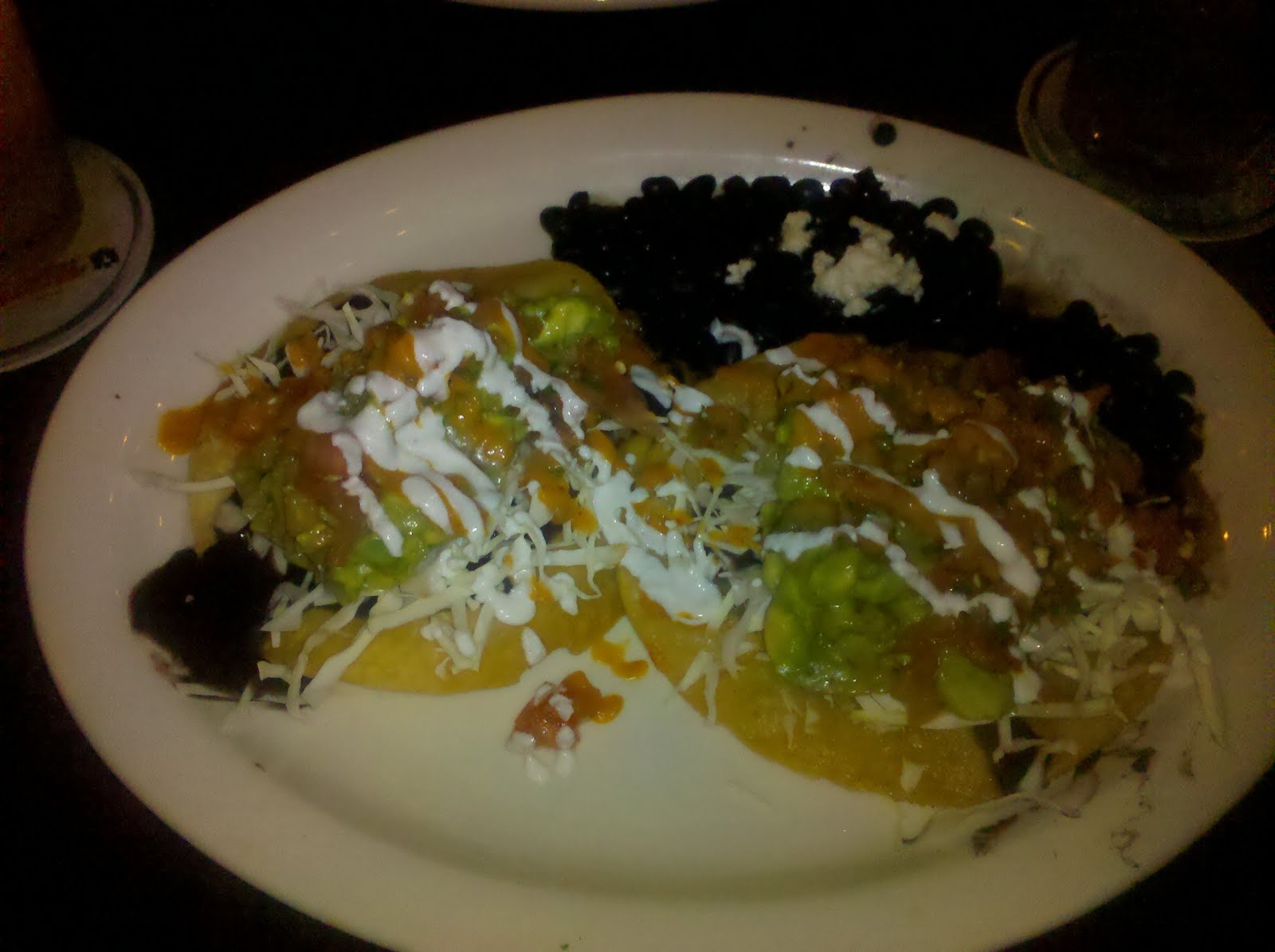 I had nice guacamole tostadas, described as crisp corn tortillas with frijoles negros, guacamole, quesco fresco, "El Diablo" salsa, rice and frijoles negros. I think the frijoles negros must be listed twice because they appear in the tostadas as well as on the side. The rice was, I suspect, a casualty of the busy small kitchen rushing too fast and too new to the large menu to remember everything that is supposed to be on the plate.
